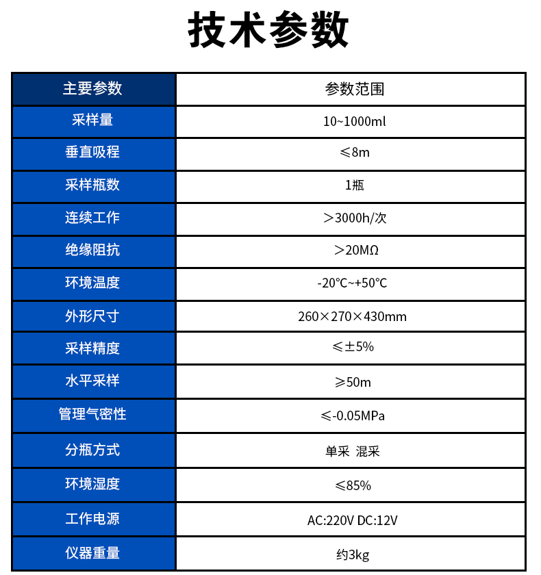水平采样 ≥50m | 采样精度 ≤±5% | ||