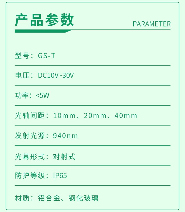 光轴间距 | 10、20、40mm | ||
