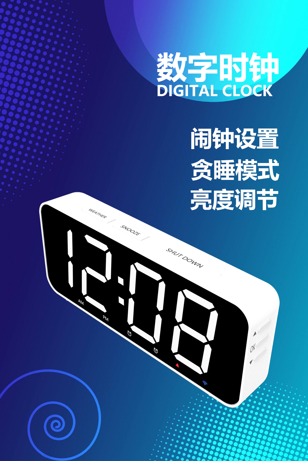 大屏时钟支持12\/24小时制可连WIFI夜间模式天气播报可接无线门铃