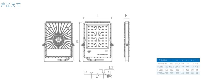 FG65a投光灯一共有4个功率分别是50W 100W 150W 200W从功率上来看覆盖还是很全面的,