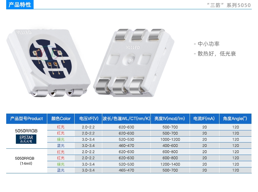 “三防”系列 5050RRGB贴片LED灯珠规格