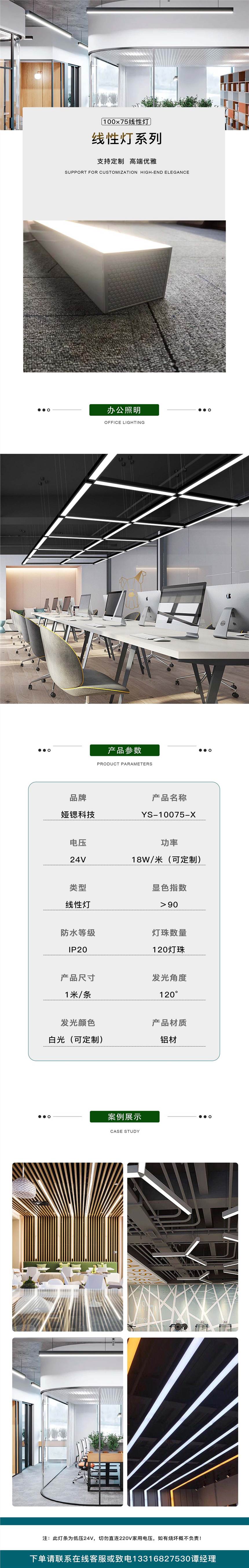 LED线性灯防眩护眼室内办公照明灯吊装灯长条灯型号10075