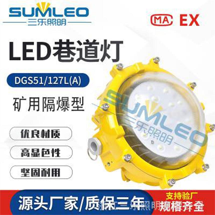 巷道灯由三部分组成:光源组件(含LED光源,反光罩及电子驱动线路板等部分)、防爆壳体(含压铸铝壳、钢化透光玻璃罩、电缆引入装置、密封件等)、防护罩。