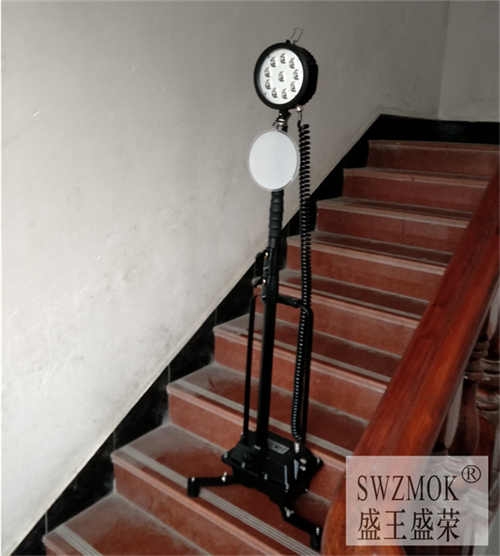 GMD6103灯头可固定在灯体或其它支撑物上使用,也可方便卸下手持使用,独特的灯头结构设计,可任意调节照射角度,还能固定在气垫式升降架上1.15-1.55米高度范围内任意升降,升降杆和电池箱为一体式结构,使用方便灵活,灯体底部装有方便的轮子,可在平地上灯置;