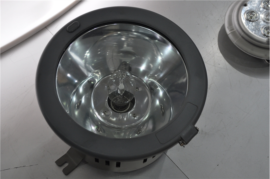 3、拧上反光镜和灯泡,再锁上透明件,最后将三芯电缆线另一端接通220V电源即可实现照明。