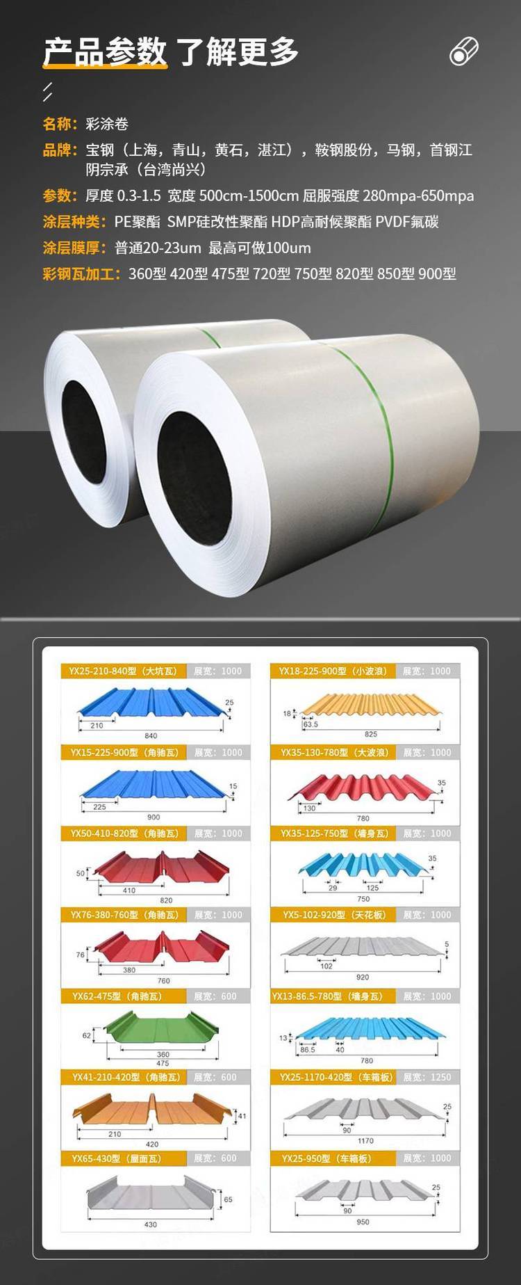 0.7mm不锈钢深灰彩钢瓦PE聚酯