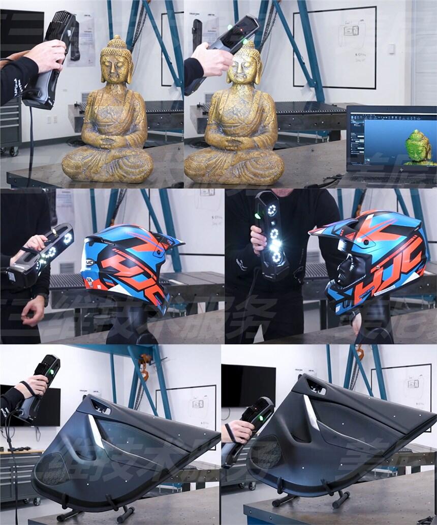 用三维扫描仪扫描被测对象表面,可以轻松获得被测对象高精度的三维数据。将三维扫描获取三维数据导入三维造型软件中,便可为造型设计提供依据,大大节省人工测绘的时间,激光三维扫描仪的精度可达0.03mm,保证逆向造型更为精确,为汽车制造企业大大节省开发成本,缩短开发周期。