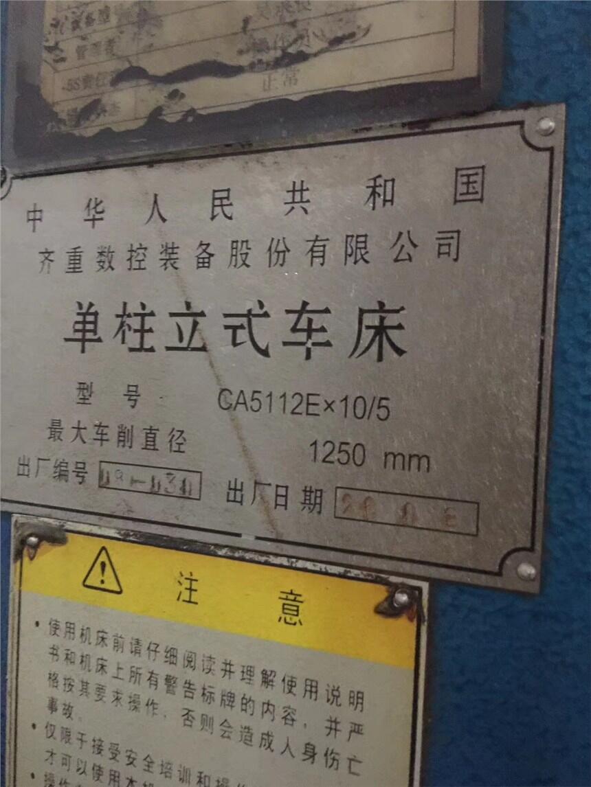 现货出售:齐重1.25米立车型号:CA5112E,回转直径1250mm加工高度:800mm齐重年代:2008年少用一台,温州提货