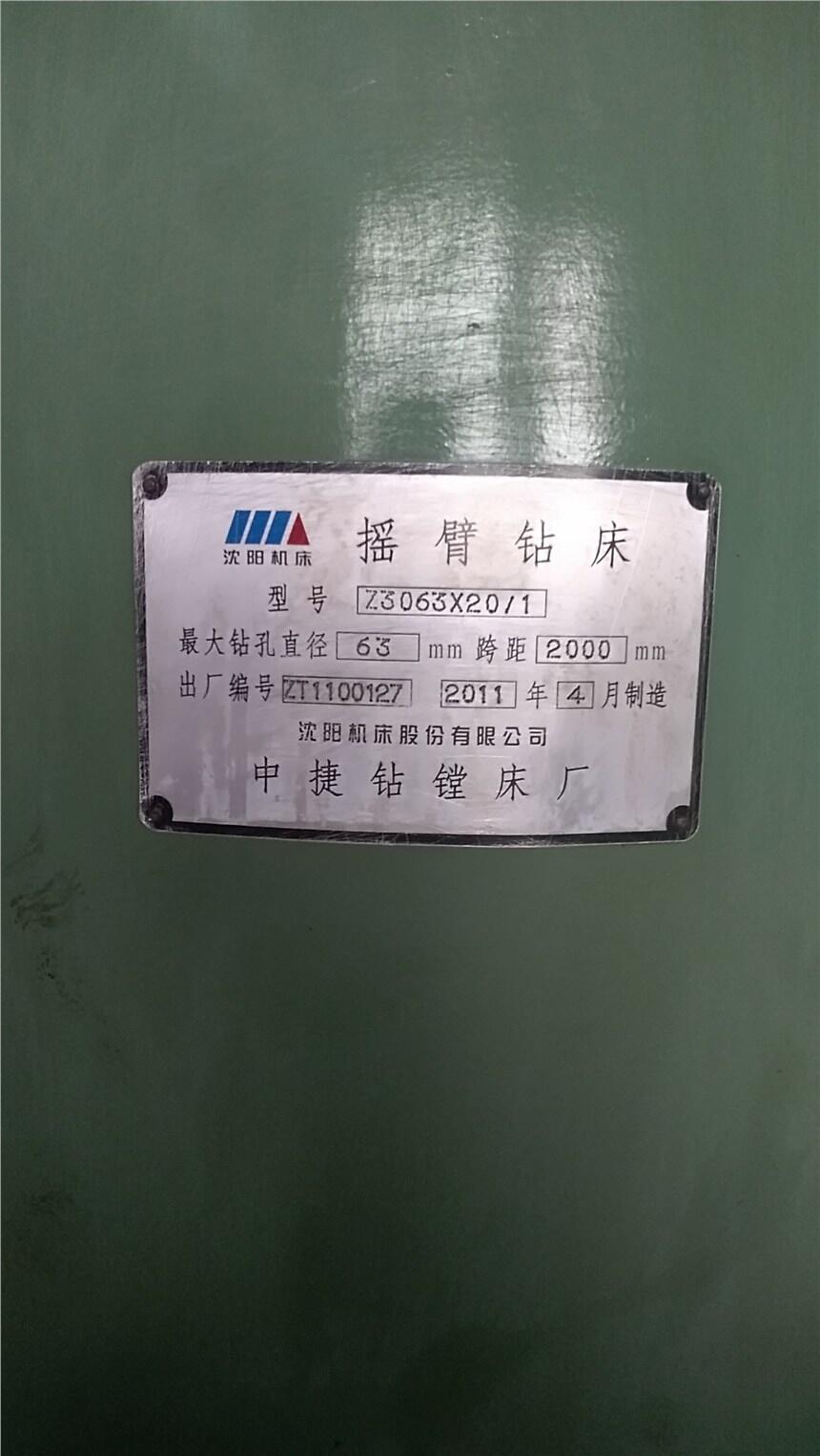 中捷摇臂钻床型号Z3063最大钻孔直径63mm跨距2000mm年代2011年安装少用可以试机