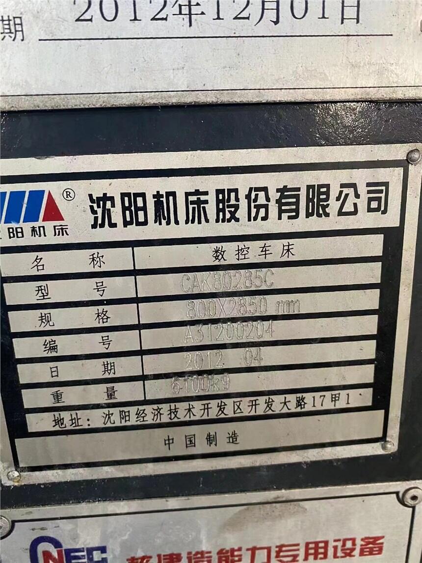沈阳3米数控车床型号CAK80285C规格800*2850mm年代2012年重量:6100KG