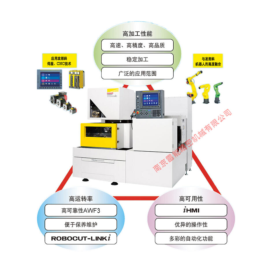 发那科(FANUC)自一九七五年开始生产慢走丝线切割机(FANUC WEDM)以来,经过数十年不间断的技术更新,发那科(FANUC)已成为世界**线切割机床生产厂家之一。发那科慢走丝线切割机(FANUC WEDM)以高速度、高精度、高可靠性、低成本维护及智能化享誉业内,被广泛应用于模具,医疗和超硬材料制造行业,在日本、欧美、东南亚具有很高的市场占有率。