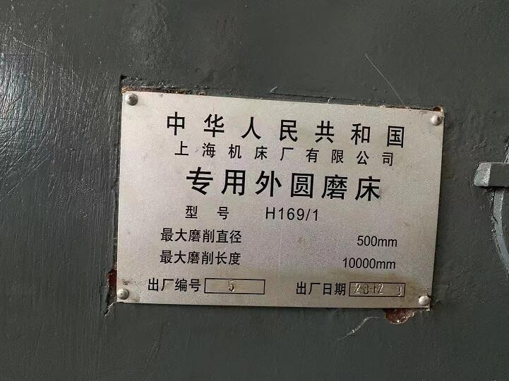 售:上海10米外圆磨床型号H169/1规格500乘以10米磨头移动,整体床身,年代2007年,导轨满花纹
