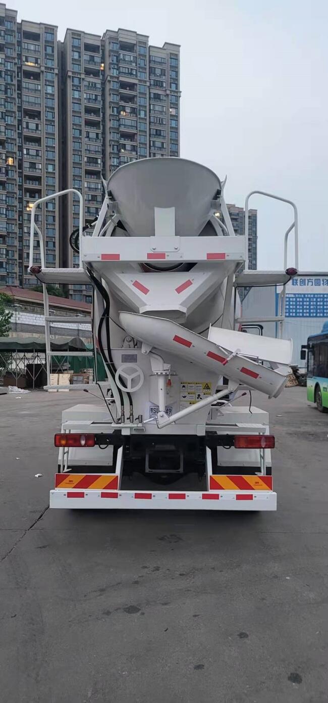 国六东风5方混凝土搅拌车采用D912豪华驾驶室,玉柴YCS04 180-68发动机,法士特小八档变速箱,轴距3800mm,250mm双层大梁,3.6吨前桥, 10吨后桥,10.00R20钢丝胎(无备胎),原厂空调,电动玻璃。中控门锁。遥控钥匙。带下防护,带排气制动,断气刹,动力转向。带ABS。罐体容积 5.8立方,全功率取力器,罐体封头厚6mm,罐体4mm,材质为Q345低合金锰板,叶片4mm,工装拼接,环缝,纵缝自动焊接,锻钢拖轮,加强型滚道,石家庄科翼KY减速机,英特帕普泵、马达。河南新乡18L散热器