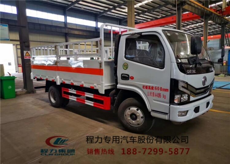 上装配置:厢体采用顶部开启仓栅式厢式车结构,外饰冷轧钢板,厢体两侧分为两段活动式结构可左右翻转,顶部高栏左右开启,后部设置左右对开门。该车厢整体厢体高1300mm适用于各种气罐、气瓶直立运输,煤气罐两层运输。底板采用3mm厚优质碳钢防滑板,底板边缘间断式焊接固定卧环,方便固定捆绑气瓶,操作方便。底板横梁采用2mm优质碳钢折弯而成,为避免地板变形焊接间距不大于350mm。