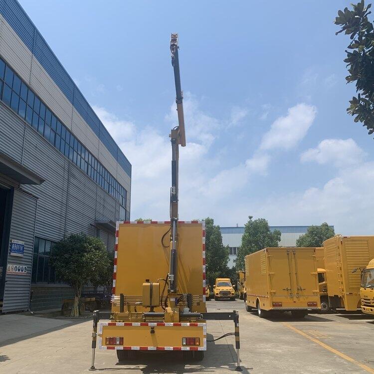 驾驶室顶带工程黄工程灯,可选安装场外照明灯。车厢两侧带2个卷帘门。内含发电机组、电控箱、排水系统等各类应急设备。驾驶室带方向助力、冷暖空调机倒车影像。