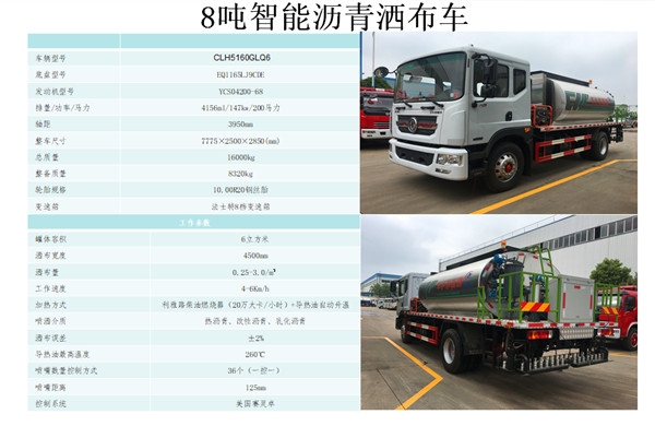 3.智能型: 驾驶室内电脑触屏操作保证洒布量及撒布宽度的精准喷洒,喷洒沥青种类:乳化沥青、改性乳化沥青、热沥青、SBS改性沥青等。