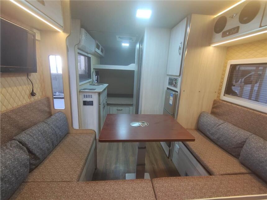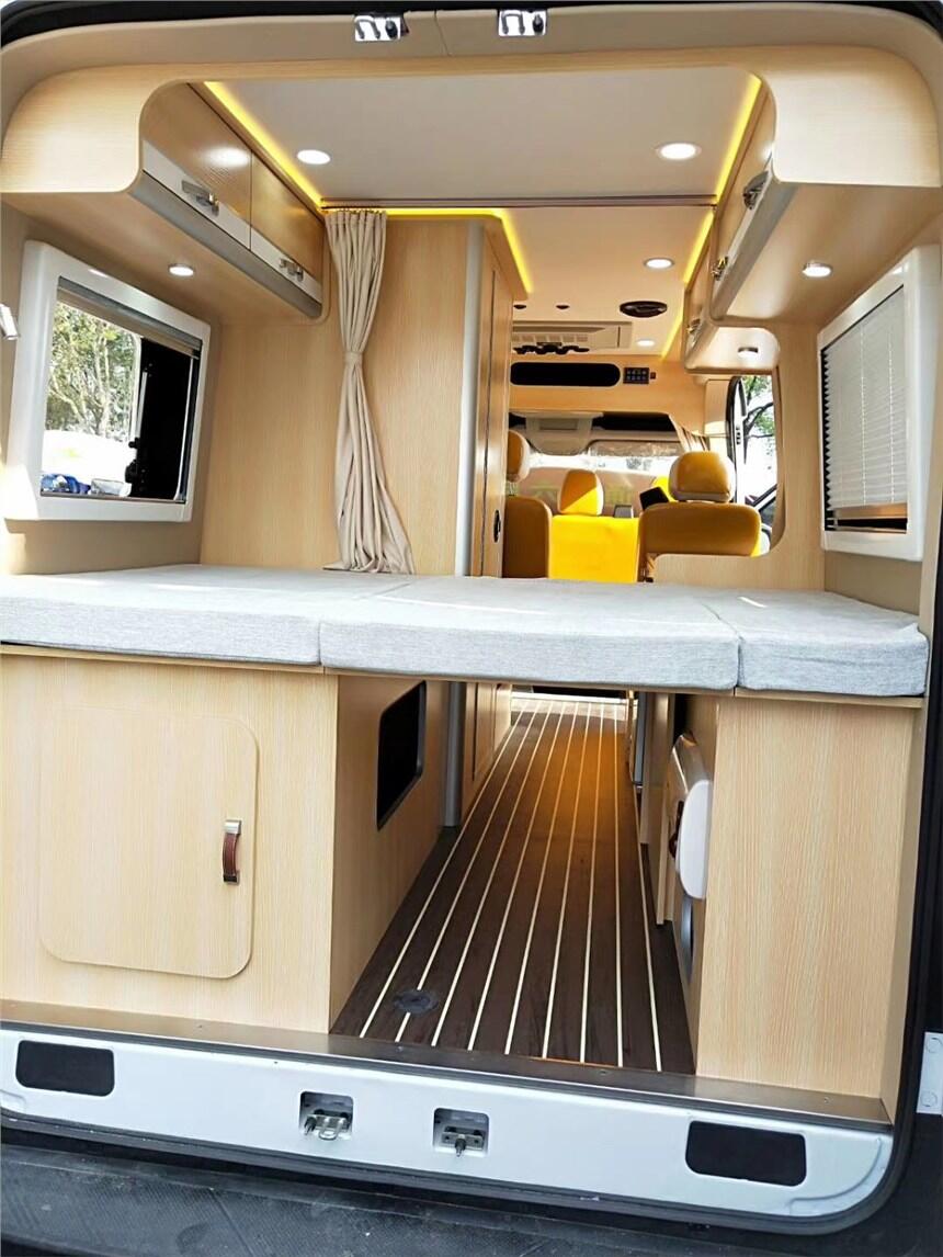 外观颜色:V90长轴高顶版内部空间很大,电视、空调、厨房、卫生间、储物柜等一应俱全。一句话形容就是“拎包即可入住”。车厢的沙发可以面对面坐下4个成人,可以作为旅途中的餐桌。餐桌可拆卸成双人床,限度利用车内空间。