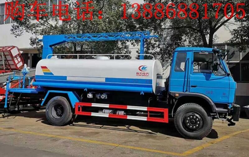 上装配置: 罐体为10立方圆形罐,罐体内部做防腐,前冲、后洒、侧喷、高炮,抑尘喷洒杆(带旋转伸缩功能)。喷洒杆离地3.5-4.5米 ,后部平台带8KW副发电机组,罐体内部加两个1.5KW电机(带搅拌功能)罐体喷漆上白下蓝,平台和喷洒杆蓝色。遥控操作喷洒杆上下左右旋转,工作环境-10°-50°。平台较上一台车左右加宽20CM,电控箱安装在后部平台。