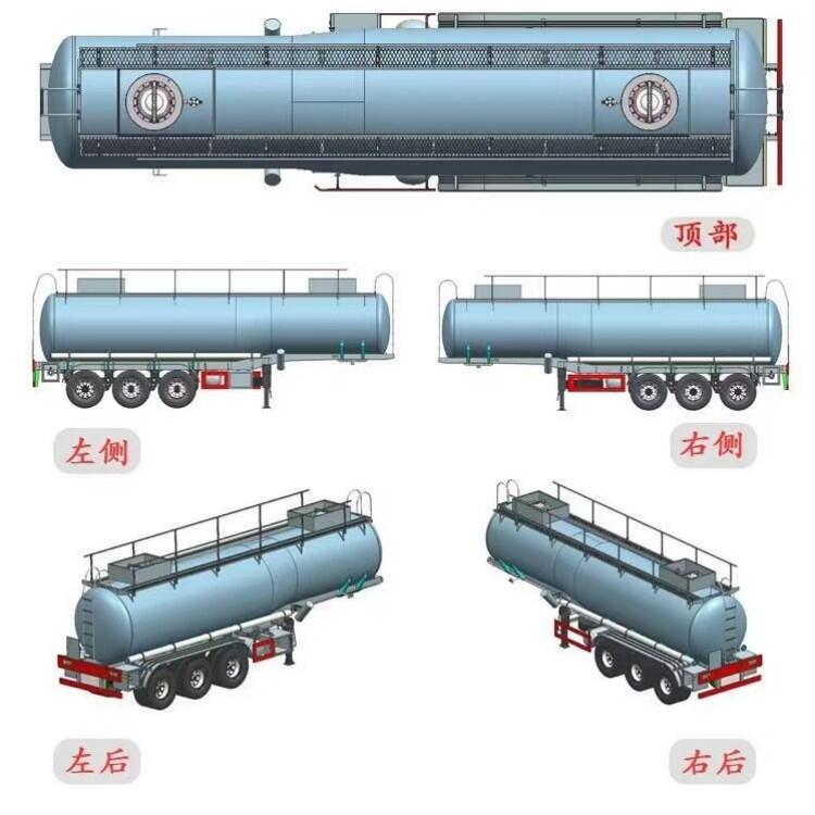 罐体采用国标碳钢板材制作罐体及封头,严格按照公告腐蚀性物品罐式运输车制作,筒体厚度