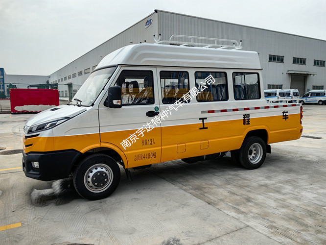 供应依维柯得意13座电力工程车 电力抢修车 依维柯13座工程救险车 配置:整车设置3+2+4座椅模式,后排窗户带遮阳帘,整车空调,车顶部安装行李架,后爬梯,车辆后部设有车斗