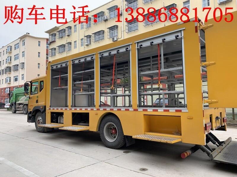东风多利卡帕斯会抢险车采用东风原厂底盘,朝柴130马力发动机,5档变速箱,700R16钢丝轮胎,带ABS、带原厂空调、电动门窗、中控锁、其他标配。