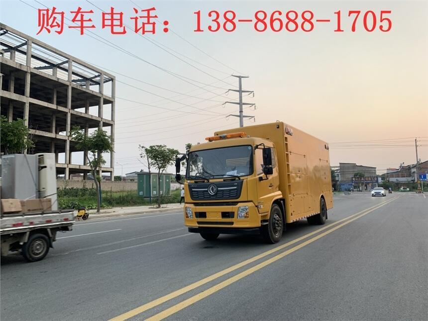 设备采用东风底盘改装,总质量12.5吨,发动机功率127kw,排放标准达到国五标准,3.8米轴距,带空调,方向助力,涉水深度600mm。