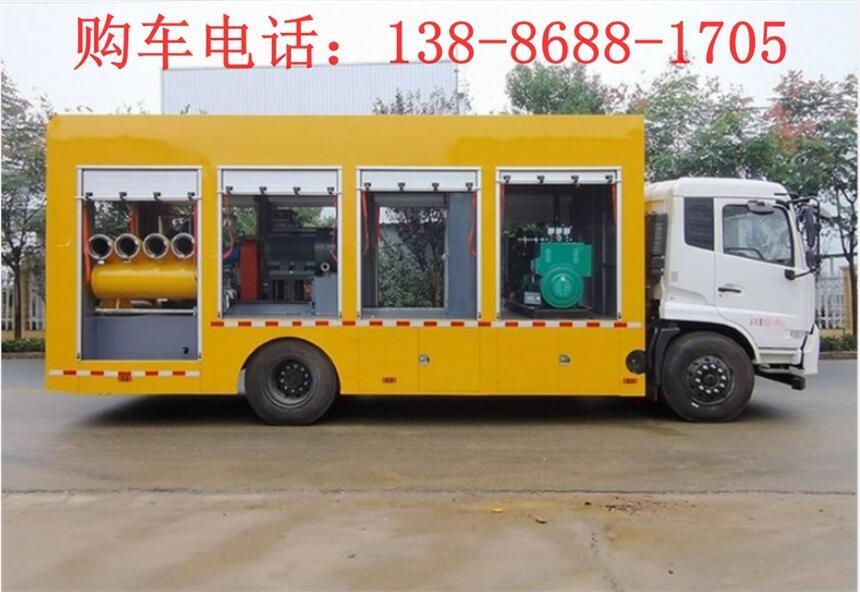 设备采用东风底盘改装,总质量12.5吨,发动机功率127kw,排放标准达到国五标准,3.8米轴距,带空调,方向助力,涉水深度600mm。