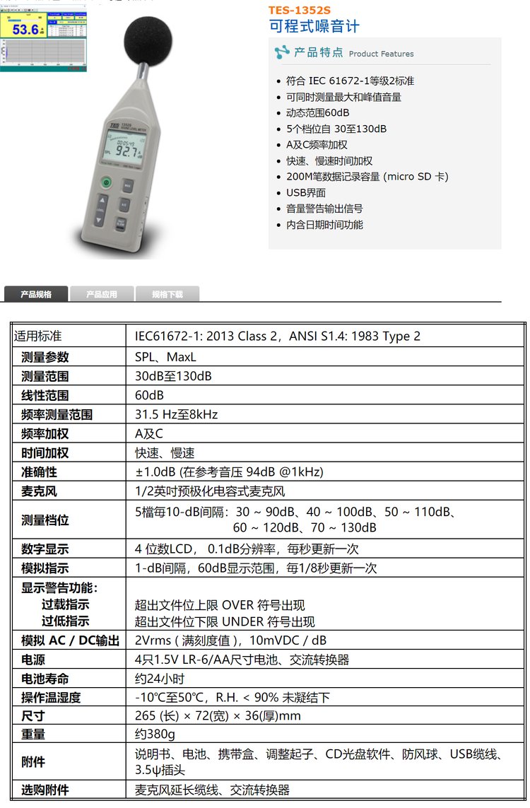 泰仕TES数字噪音计分贝仪声级计TES-1352S/积分式TES-1353S 品牌 | 泰仕TES | ||