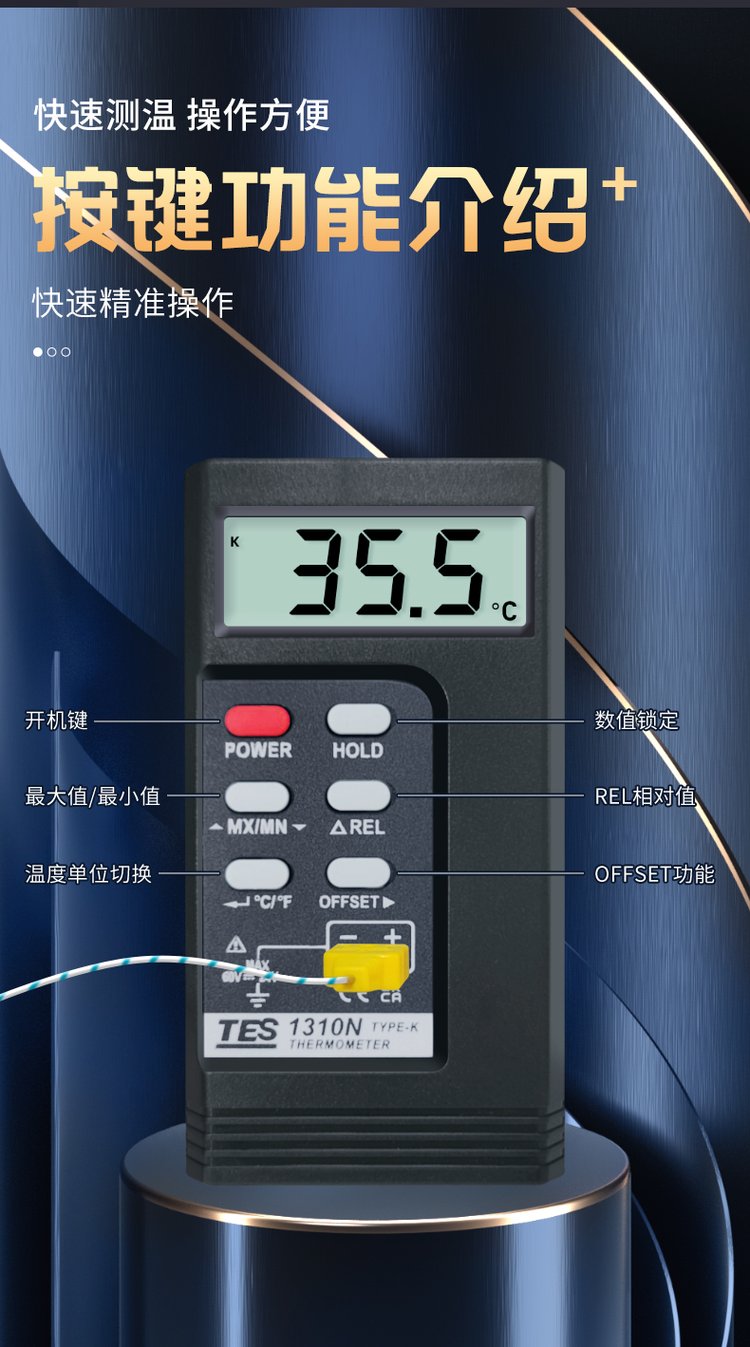 中炫供应TES泰仕数字式温度计TES-1310N带修正温度表测温仪厂家