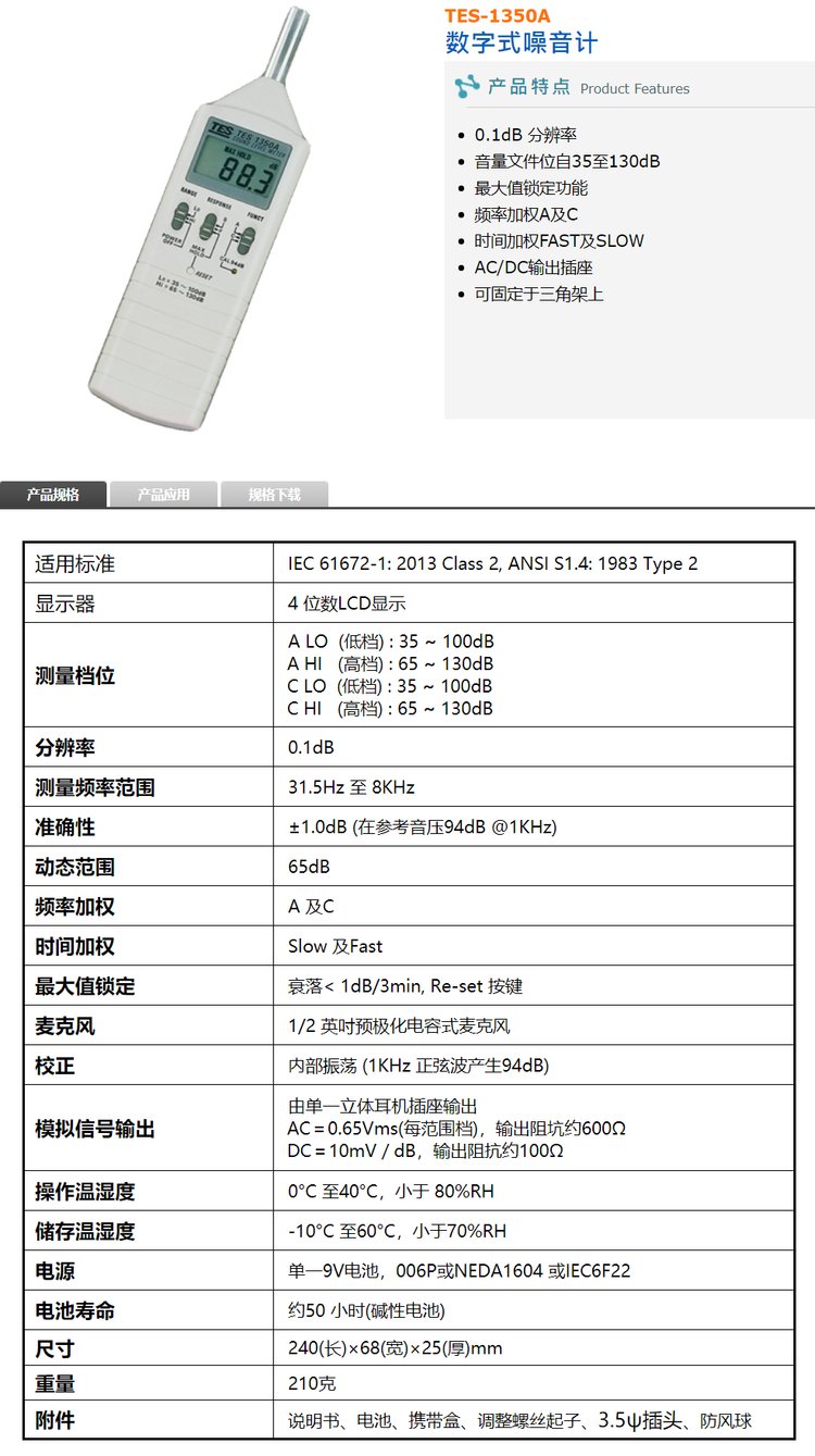 中炫供应 泰仕TES噪音计声级计TES-1350A/TES-1350R 分贝仪厂家 品牌 | 台湾泰仕TES | ||