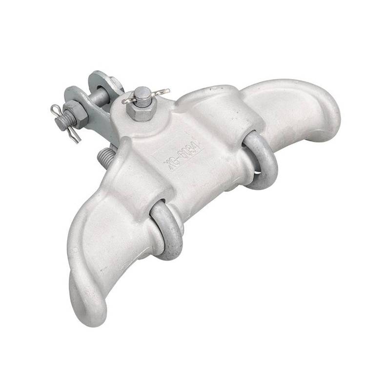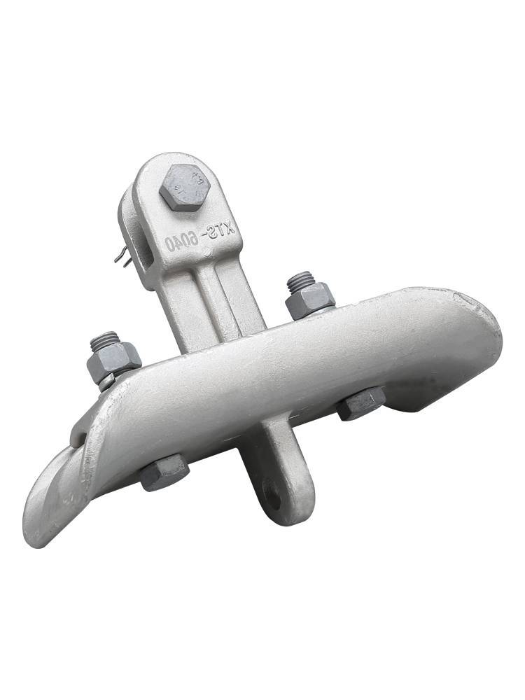 XG型悬垂线夹常有的定型产品,现在保留了U型螺栓式样(通常叫船型线夹),它是由挂架U型螺栓,可锻铸铁制造的线夹船体、压板组成。另一种就是预绞式悬垂线夹。悬垂线夹用于将导线固定在直线杆塔的绝缘子串上,或将避雷线悬挂在直线杆塔上,亦可用于换位杆塔上支持换位导线以及耐张转角杆塔跳线的固定。