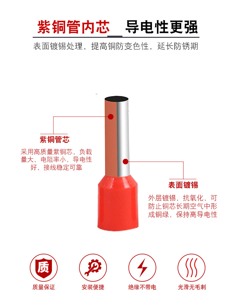 管型1008欧式针形接线端子VE预绝缘冷压线耳铜鼻子电线接头压线钳