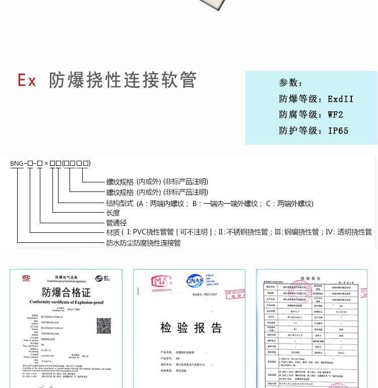 依客思 防爆挠性连接管BNG-DN25*1000mm-M36*2外-G1内/ExdIIC 防护等级 | IP65 | ||