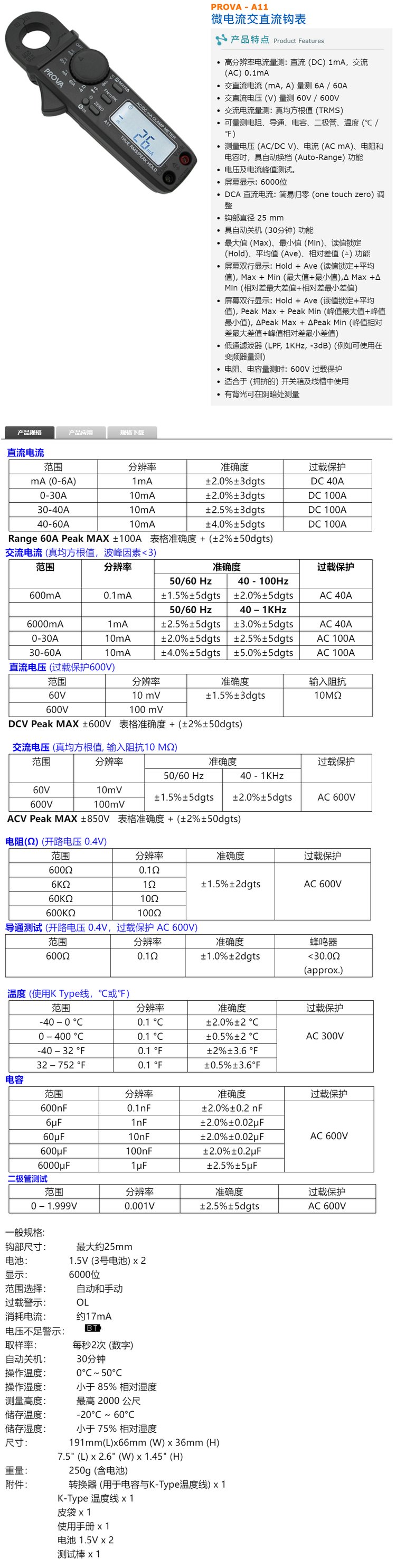 TES泰仕PROVA-11/PROVA-A11高精度微安小电流交直流钳表 品牌泰仕TES