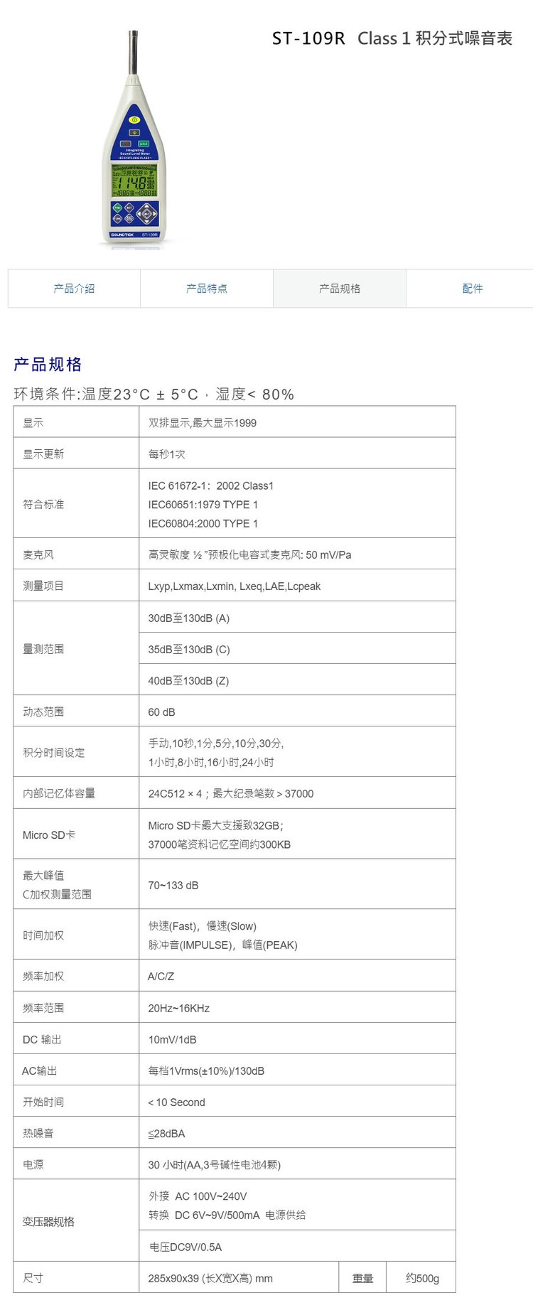 准确性 | ±1.5dB (在参考音压94dB @1KHz) | ||
