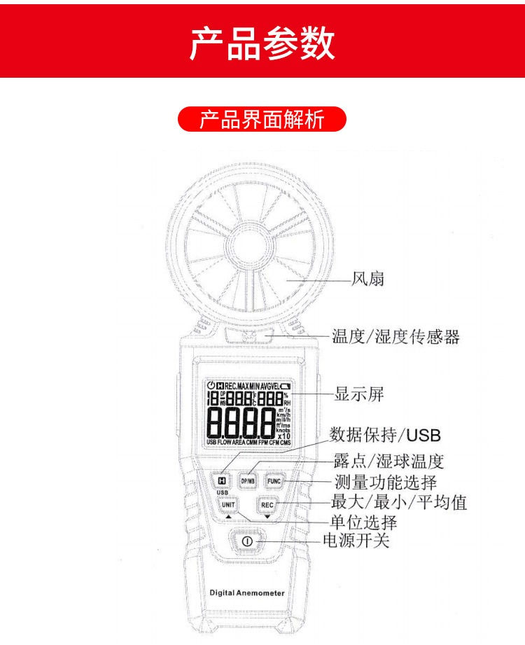 BSD-340A/340B叶轮式风速风温风量仪贝斯顿BASDEN手持式气象仪 是否支持加工定制 | 否 | ||
