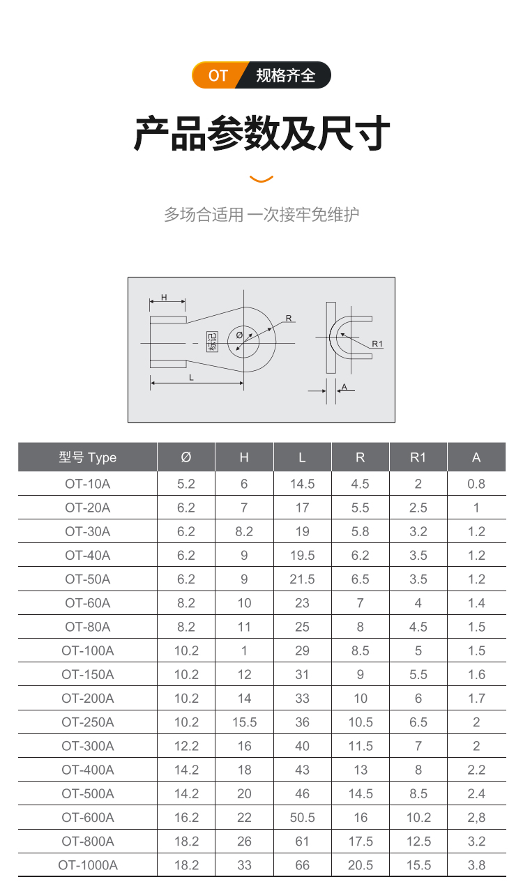 型号 | OT开口铜鼻子 | ||
