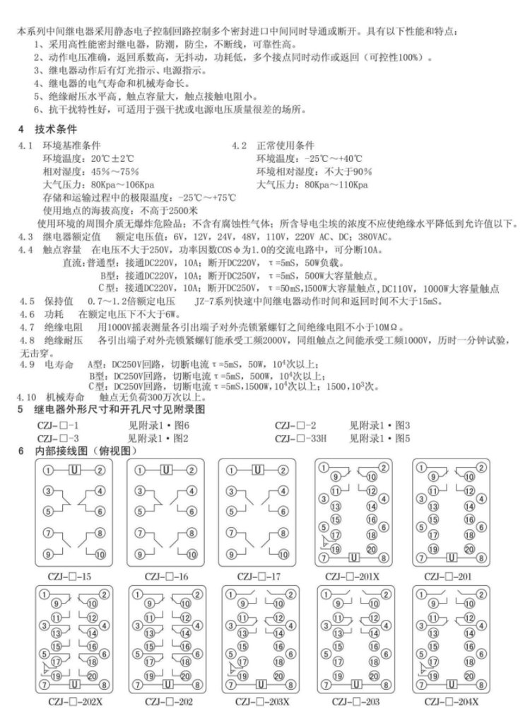 触点方式及数量 | 4常开2转换 | ||