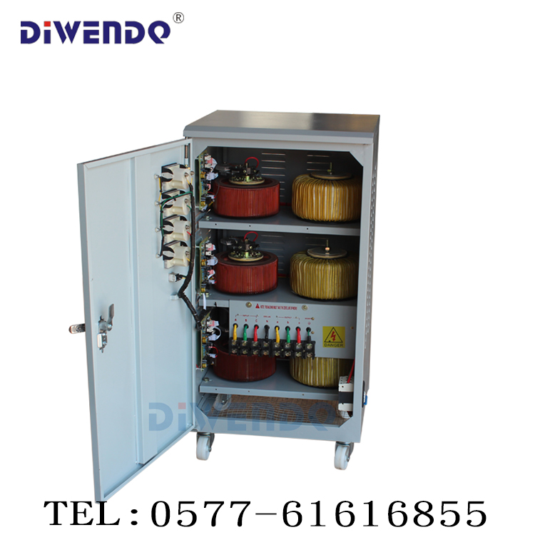 本产品3KVA以下规格为自藕式,有110V220V两种输出。单相5KVA、三相15KVA以上规格均为补偿式。补偿电路由调压器和补偿变压器等组成。三相30KVA以下规格产品(TNS/SVC系列)均采用分相独立调整结构,其特点是能够有效地消除由于电网或负载三相不平衡造成对电器设备的影响。