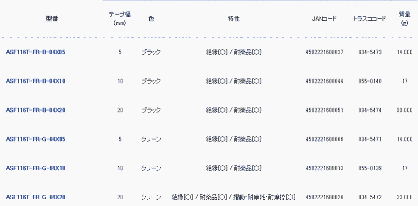 日本中兴化成工业CHUKOH胶带ASF116T-FR-B-04X05