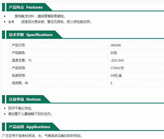 江西欣盛管螺纹速封带 JXS246 175ml支