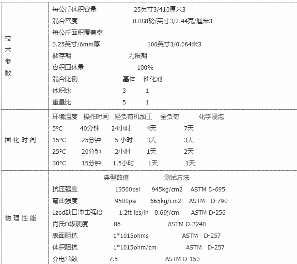 用于修补及翻新各种设备如热交换器的管板、水箱壳、泵、阀、管件、外壳、护盖、槽罐、冷却水塔、排水器、扩散板、轴承等的修复及翻新