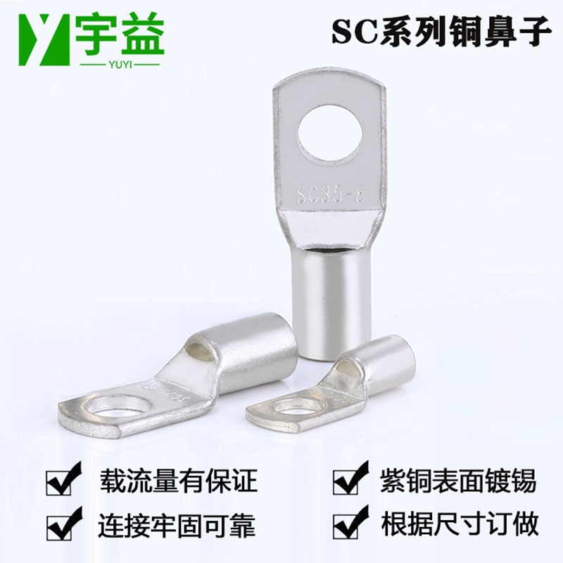 宇益电气支持铜鼻子定做,线鼻子定做,单孔铜鼻子定制,铜鼻子孔径定做,非标铜鼻子定做,无孔铜鼻子定做,光板铜鼻子定做,双孔铜鼻子定做,折弯铜鼻子定做,45°铜鼻子定做,90°铜鼻子定做,可按尺寸、图纸、样品进行加工和定做铜鼻子产品,