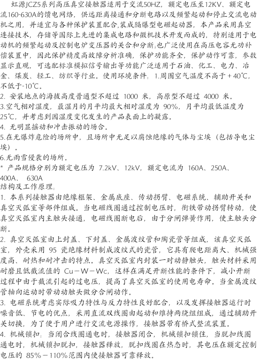 JCZ5-12J/630 高压交流真空接触器 机械保持 电气柜用