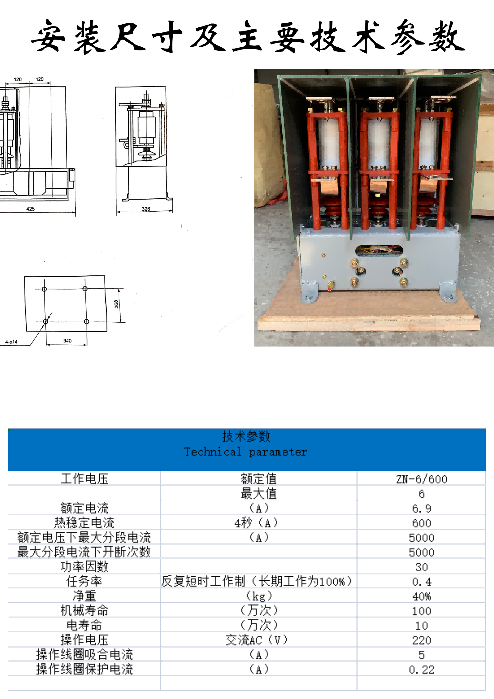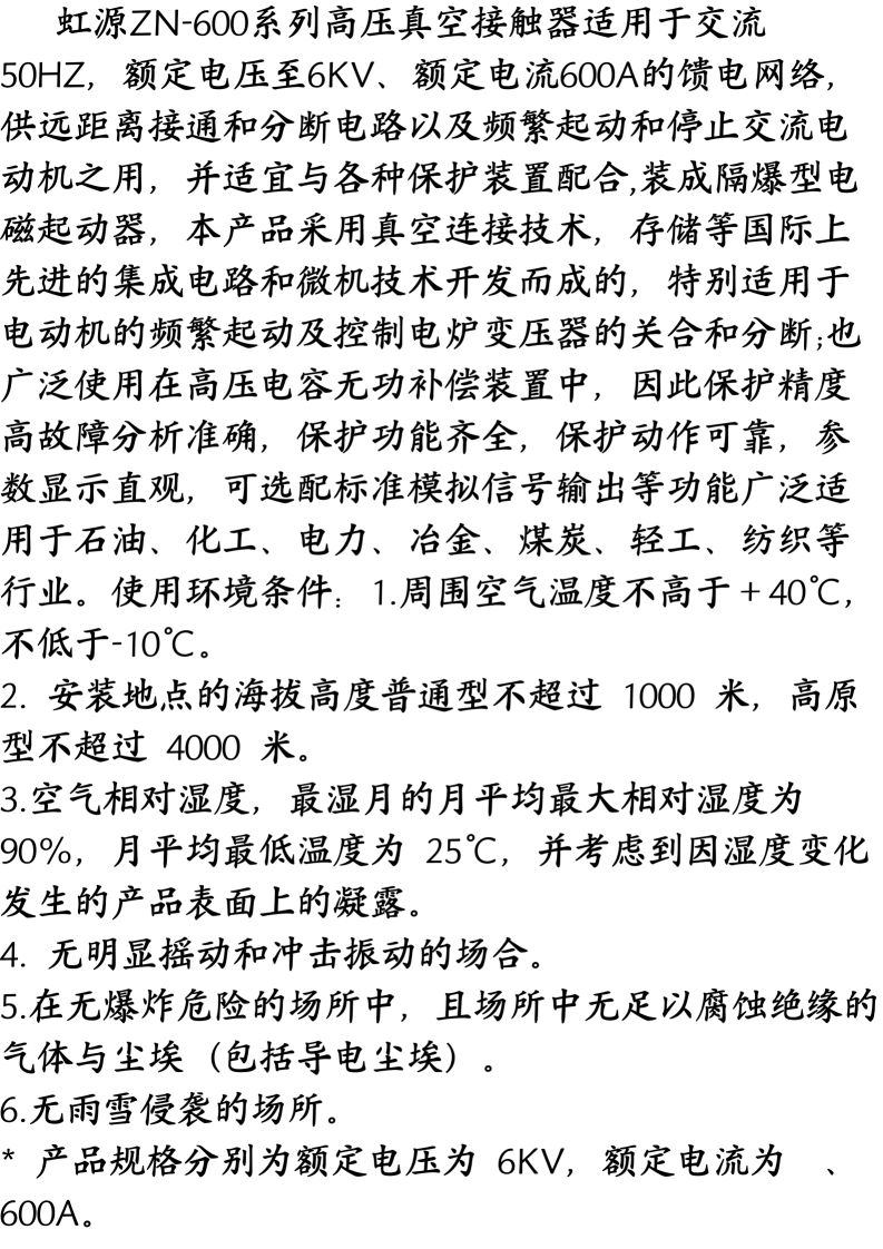 虹源ZN-600/6G 交流真空接触器6KV 高压三极 专业厂家 电气柜用