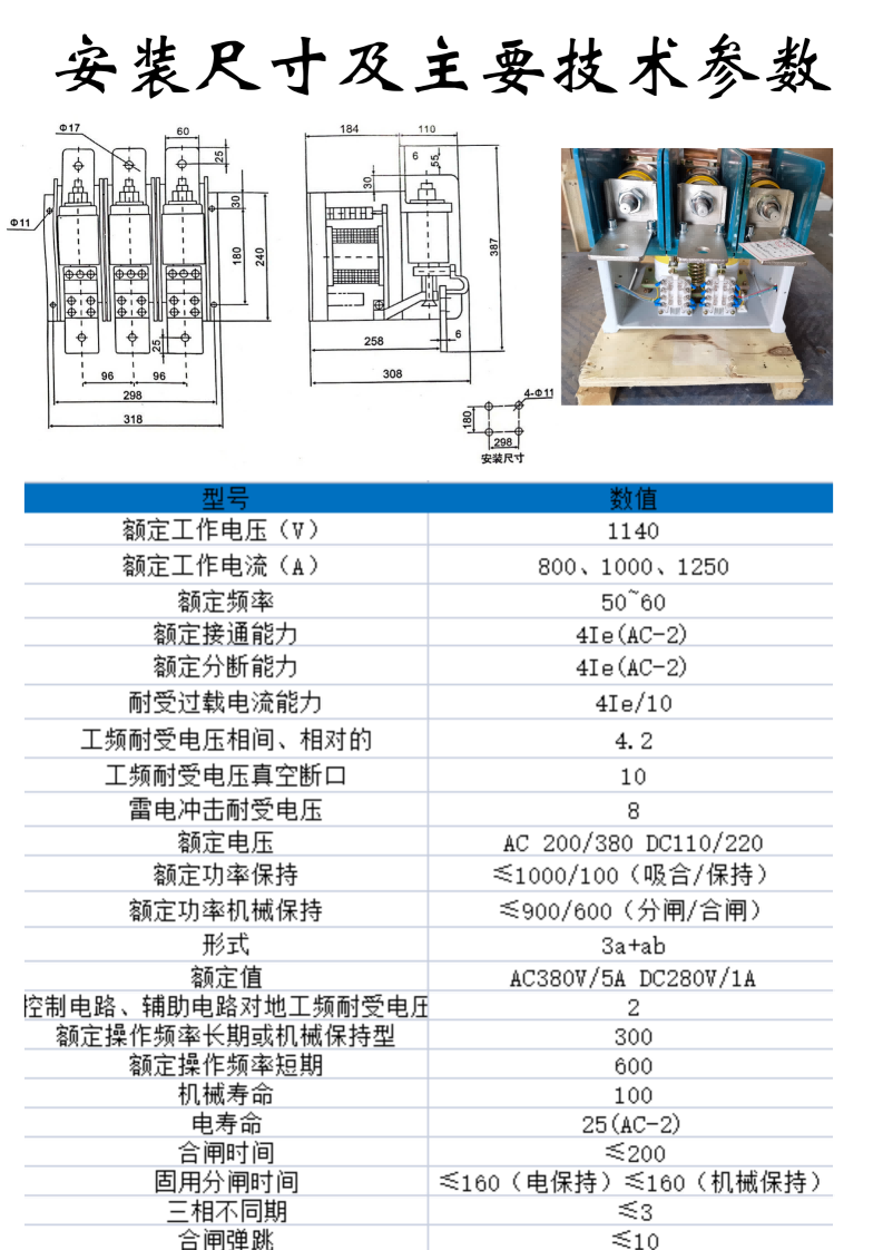 CKJ3-800A/1140V 交流低压真空接触器 专用接触器 附件