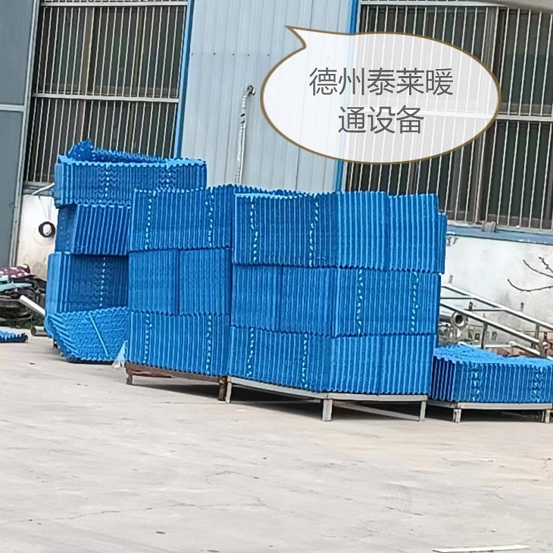 本系列采用两侧进风,靠顶部的风机使空气经由塔两侧的填料,与热水进行质交换,湿热空气再排向塔外,填料采用两面带凸点的点波片,通过安装使点波片粘接成整体,以提高刚性。由于两面有凸点避免了水滴下的机会,提高了形成水膜的使用,填料尾部设有收水措施。