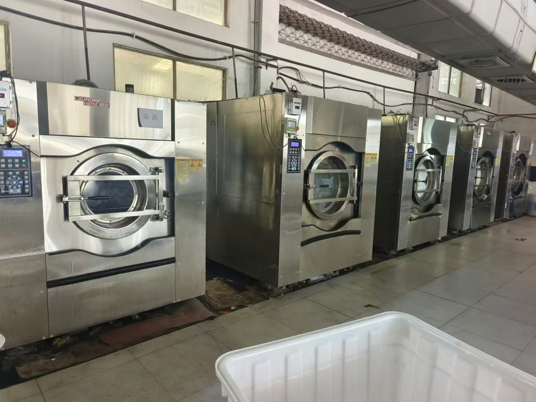 首先是洗衣机,它是洗涤厂最基础的设备之一。根据洗涤厂规模的不同,洗衣机的型号和数量也会有所不同。洗衣机可以根据衣物的种类和数量进行调整,常见的洗衣机有滚筒式、波轮式、喷淋式等。