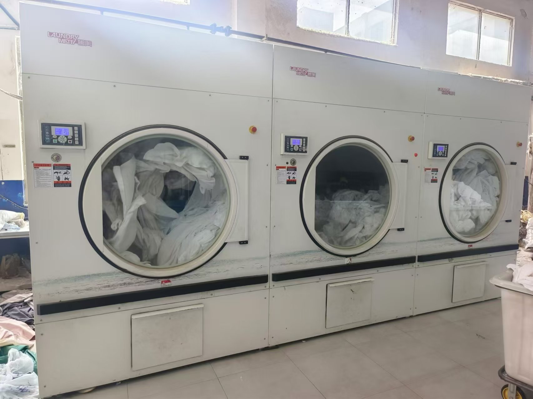 首先是洗衣机,它是洗涤厂最基础的设备之一。根据洗涤厂规模的不同,洗衣机的型号和数量也会有所不同。洗衣机可以根据衣物的种类和数量进行调整,常见的洗衣机有滚筒式、波轮式、喷淋式等。