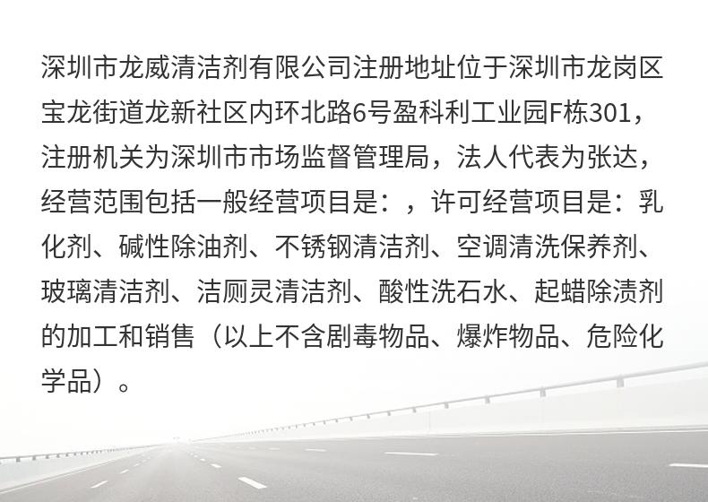 深圳市龙威清洁剂有限公司 智能客服智能客服在线解答,若涉及资金打款事宜,务必与厂家进行电话确认。